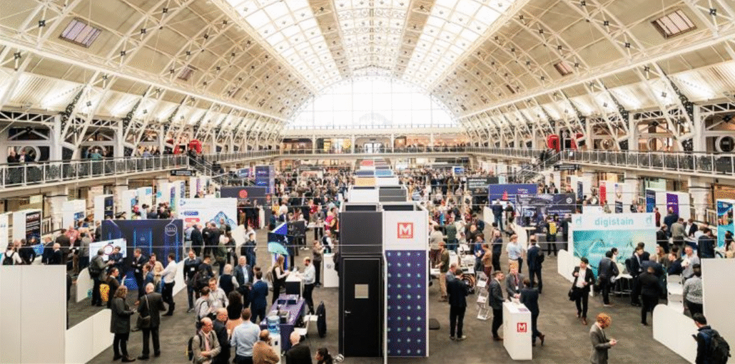 Image is a photo of a previous Showcase, showing great attendance and lots of stalls for people to visit